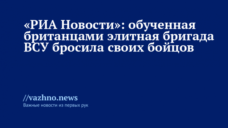 Командиры считающейся элитной 82-й десантно-штурмовой бригады Вооруженных сил Украины (ВСУ), которую готовили инструкторы Вооруженных сил Великобритании, оставили своих бойцов на позициях. Об этом 8 ноября сообщает «РИА Новости» со ссылкой на источник в российских силовых структурах.