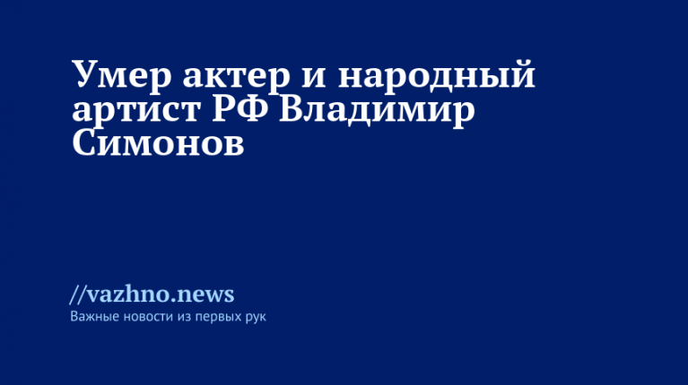 На 68-м году жизни скончался ведущий актер Театра имени Евгения Вахтангова, народный артист России Владимир Симонов. Сообщение об этом 9 ноября опубликовал его коллега, актер Антон Прохоров.