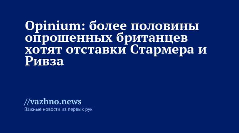 Согласно опросу агентства маркетинговых исследований и анализа Opinium, более половины граждан Великобритании хотят, чтобы премьер-министр Кир Стармер и министр финансов Рэйчел Ривз покинули свои посты. Эти данные отражены на графиках, размещенных 8 ноября на странице компании в соцсети X (бывш. Twitter).