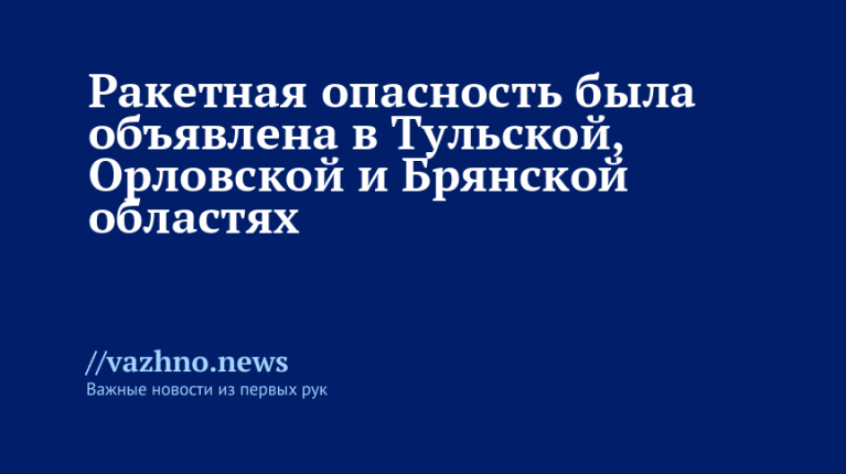 Ракетная опасность введена одновременно в трех регионах РФ — в Тульской, Орловской и Брянской областях. Об этом утром 9 ноября сообщили руководители этих субъектов: Дмитрий Миляев, Андрей Клычков и Александр Богомаз.