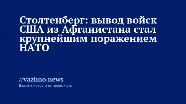 Бывший генеральный секретарь НАТО, который сейчас занимает пост министра финансов Норвегии, Йенс Столтенберг признал, что вывод войск США из Афганистана оказался самым большим поражением Североатлантического альянса. Об этом 8 ноября он сообщил в интервью газете The Times.