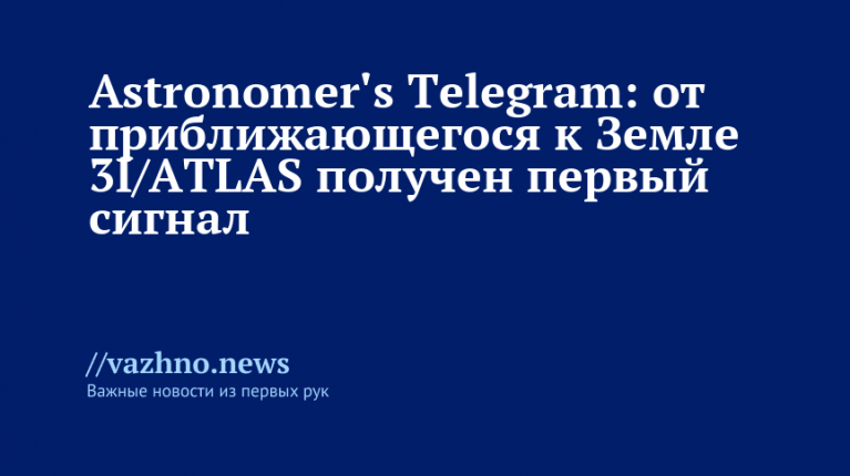 Исследователям удалось зафиксировать первый сигнал, переданный в линиях 1665 МГц и 1667 МГц от приближающегося к Земле космического тела 3I/ATLAS. Об этом 4 ноября сообщается на сайте интернет‑сервиса Astronomer's Telegram, предназначенного для распространения сведений о космических наблюдениях.