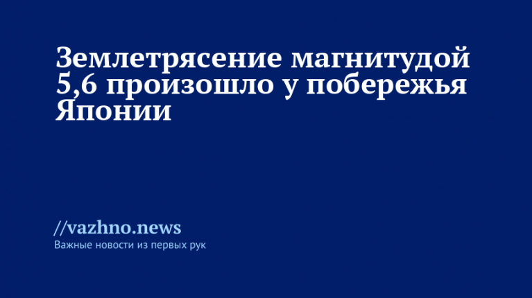У восточного побережья Японии зарегистрировали землетрясение магнитудой 5,6. Об этом 9 ноября сообщил Европейско-Средиземноморский сейсмологический центр (EMSC).