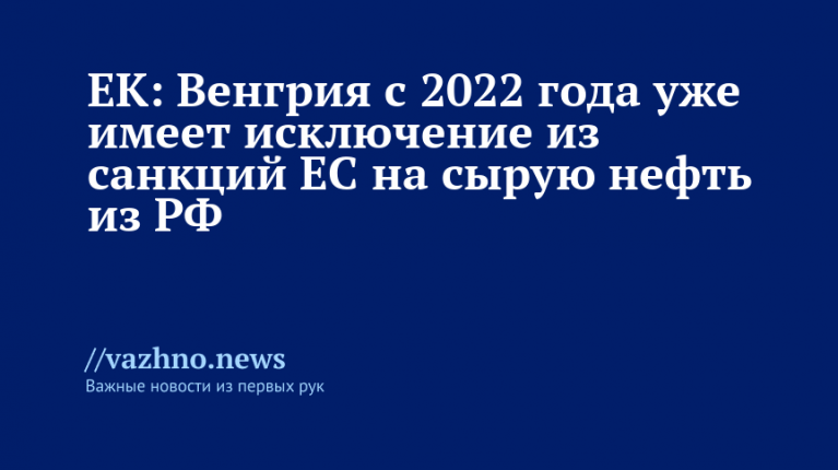 «В рамках своих санкционных пакетов Европейская комиссия в 2022 году ввела запрет на импорт российской нефти за исключением Венгрии и Словакии, для которых действуют исключения из общего запрета ЕС на импорт российской нефти», — сказал он в беседе с «РИА Новости».