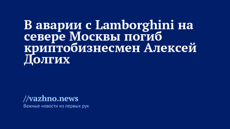 Криптобизнесмен Алексей Долгих погиб в ДТП с Lamborghini в Москве