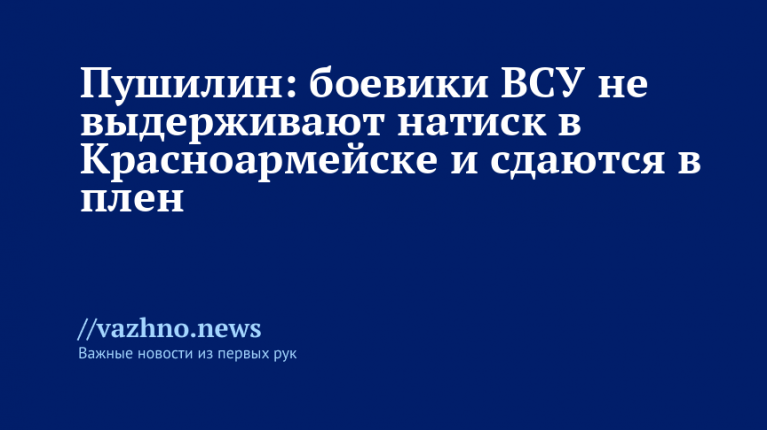 Бойцы Вооруженных сил Украины (ВСУ), оказавшиеся в окружении в районе Красноармейска и Димитрова, не выдерживают давления российских войск и сдаются в плен. Об этом 8 ноября заявил глава Донецкой Народной Республики (ДНР) Денис Пушилин.