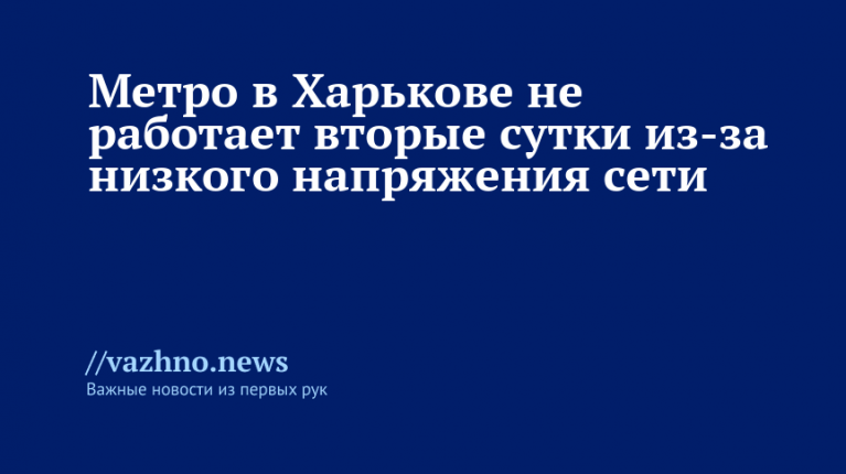 В украинском Харькове уже вторые сутки подряд приостановлено движение поездов из-за низкого напряжения в сети. Об этом 9 ноября сообщило коммунальное предприятие «Харьковский метрополитен».