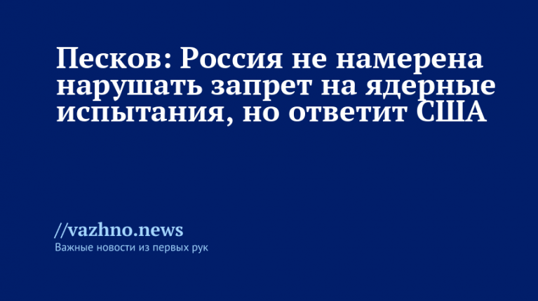 «Путин неоднократно говорил, что Россия привержена своим обязательствам по запрету ядерных испытаний, и мы не собираемся этого делать, но если это сделает другая страна, то мы обязаны будем это сделать с точки зрения сохранения паритета», — сообщил Песков в программе «Москва. Кремль. Путин».