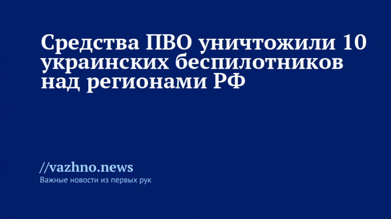 «Дежурными средствами ПВО уничтожены 10 украинских беспилотных летательных аппаратов самолетного типа», — указано в Telegram-канале ведомства.
