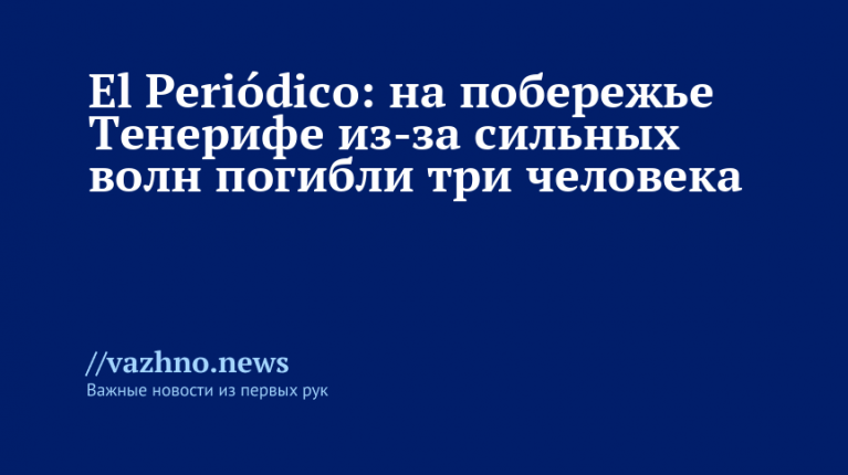 По сведениям издания, в инциденте также получили травмы еще 15 человек. Газета уточняет, что 79-летняя гражданка Нидерландов утонула на северном побережье острова в районе Пуэрто-де-ла-Крус. Еще одна погибшая — женщина из Ла-Оротавы, которая скончалась после падения в воду в окрестностях Ла-Гуанча. Третья жертва — мужчина, которого застигла гибель при утоплении у берегов Гранадильи.