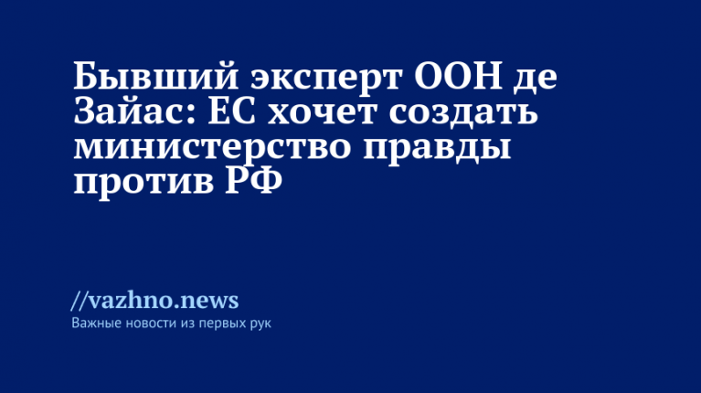 Предложение главы Европейской комиссии (ЕК) Урсулы фон дер Ляйен о создании нового органа наподобие «министерства правды» против России и Китая интерпретируется как стремление Евросоюза (ЕС) узаконить практики цензуры. С таким утверждением 9 ноября выступил американский юрист-международник, ранее работавший независимым экспертом Совета ООН по правам человека (СПЧ ООН), Альфред де Зайас.