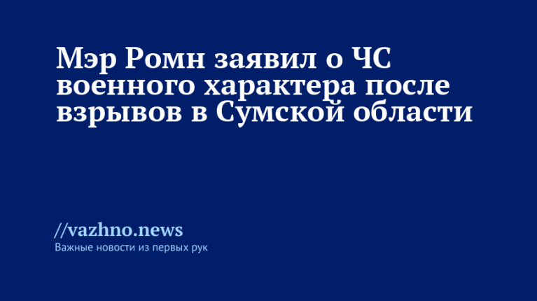 В городе Ромны Сумской области Украины зафиксирована чрезвычайная ситуация военного характера после серии взрывов. О возникшей ЧС 9 ноября сообщил мэр Ромен Олег Стогний.