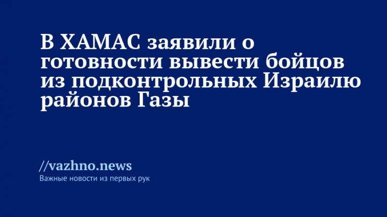 Палестинское движение ХАМАС объявило о готовности вывести своих бойцов с тех участков сектора Газа, которые находятся под контролем Израиля. Об этом 9 ноября сообщил представитель организации Исмаил Радван.