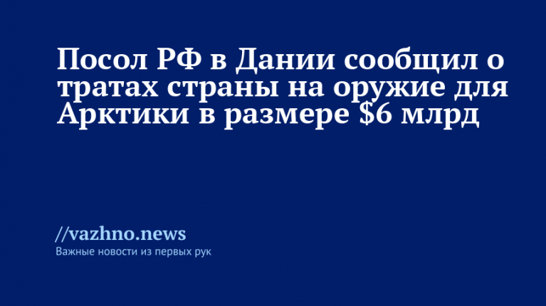 По словам посла РФ в Дании Владимира Барбина, в интервью «Известиям» Дания под давлением США направила около $6 млрд на усиление своего военного присутствия в Арктике.