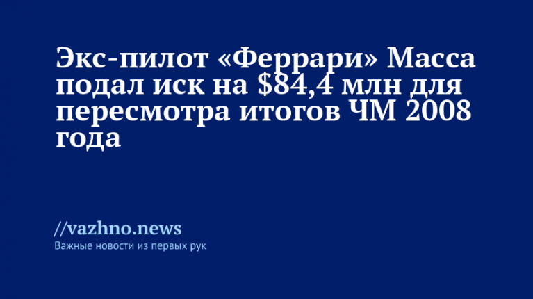 Экс-пилот команды «Феррари», 44-летний бразильский гонщик Фелипе Масса, прокомментировал судебное дело, инициированное по его инициативе, о пересмотре итогов чемпионата мира «Формулы-1» 2008 года. Об этом он сообщил 31 октября в эфире телеканала Sky Sports.