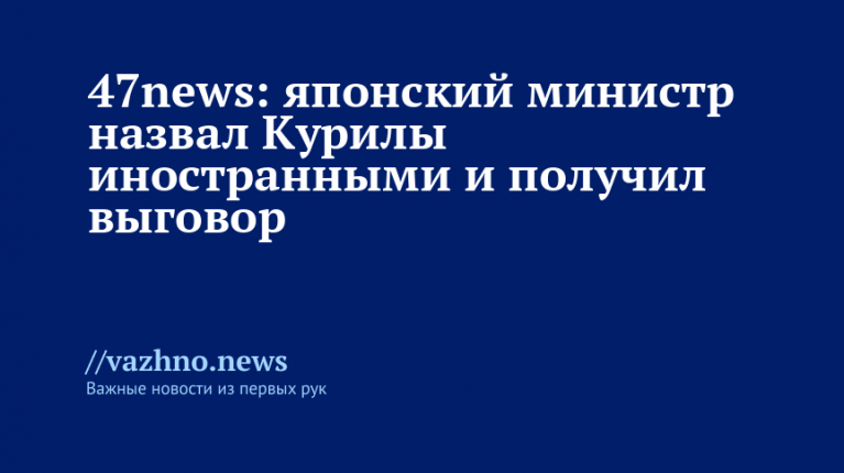 Генеральный секретарь кабинета министров Японии Минору Кихара выразил порицание министру по делам Окинавы и «северных территорий» Хитоси Кикаваде за его высказывание, в котором оспариваемые Японией территории Курильских островов были названы иностранными. Об этом 10 ноября сообщил новостной портал 47news.