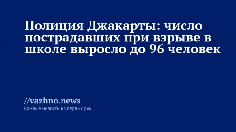 Число пострадавших в результате взрыва в здании школы в Джакарте увеличилось с 54 до 96 человек. Об этом 7 ноября сообщила газета Kompas, ссылаясь на пресс-службу столичной полиции Индонезии.