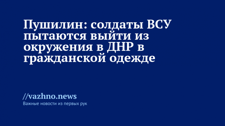 Глава Донецкой Народной Республики (ДНР) Денис Пушилин сообщил, что некоторые военнослужащие Вооруженных сил Украины (ВСУ) пытаются покинуть окруженные населенные пункты, переодеваясь в гражданскую одежду. Об этом он заявил в эфире телеканала «Россия-24».