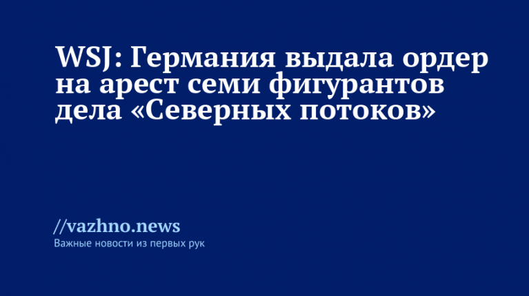 Германия выписала ордеры на арест семи лиц, причастных к подрыву трубопроводов «Северный поток -– 1» и «Северный поток – 2». Об этом 10 ноября сообщила газета Wall Street Journal (WSJ) со ссылкой на информированные источники.