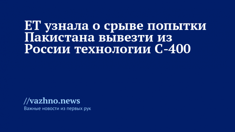 ET: сорвана попытка Пакистана вывезти из России технологии С-400