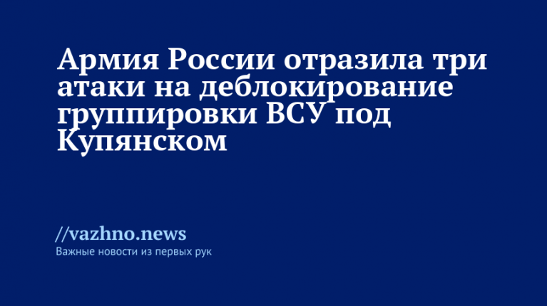 В сообщении также отмечено, что в самом Купянске Вооруженные Силы России продолжают наносить удары по окруженной украинской группировке и добиваться её разгрома.