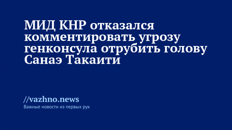 МИД Китая воздержался от высказываний по инциденту с угрозами, исходившими от генерального консула КНР в Осаке Сюэ Цзяня в адрес премьер-министра Японии Санаэ Такаити.