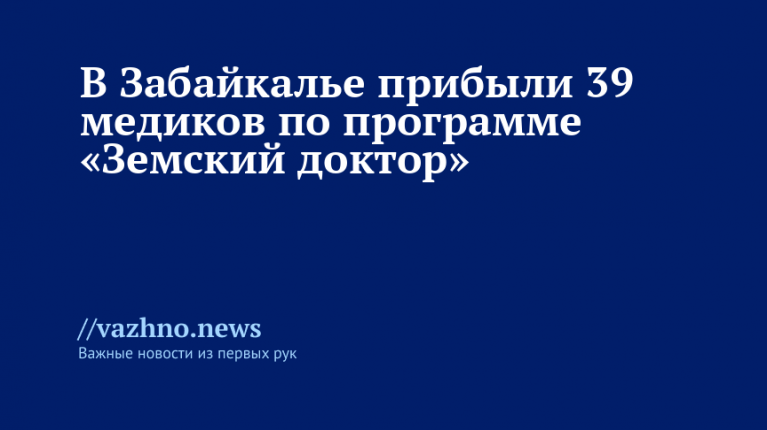 В рамках программы «Земский доктор» в Забайкальский край продолжают прибывать медицинские работники. Руководитель краевого министерства здравоохранения Оксана Немакина сообщила в эфире «Россия 24», что в регион уже приехали 39 врачей и 11 специалистов среднего звена.