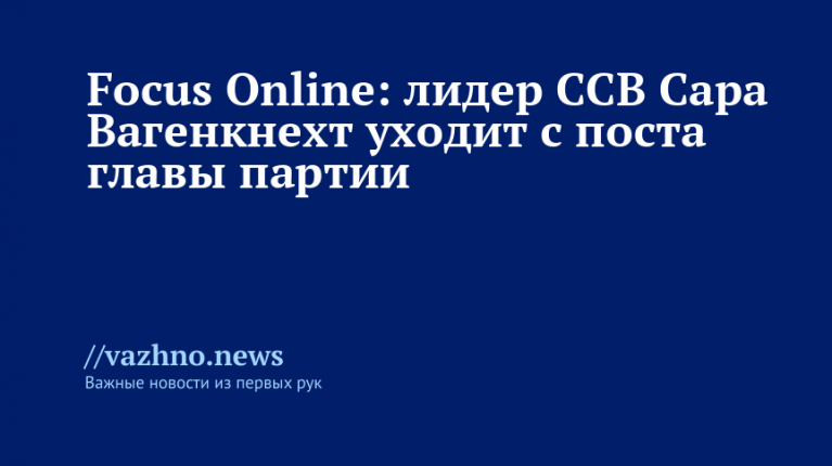 «Сара Вагенкнехт больше не хочет в будущем выступать в качестве лидера партии «Союз Сары Вагенкнехт». Тем не менее, она хочет остаться в важной роли», — указано в публикации.