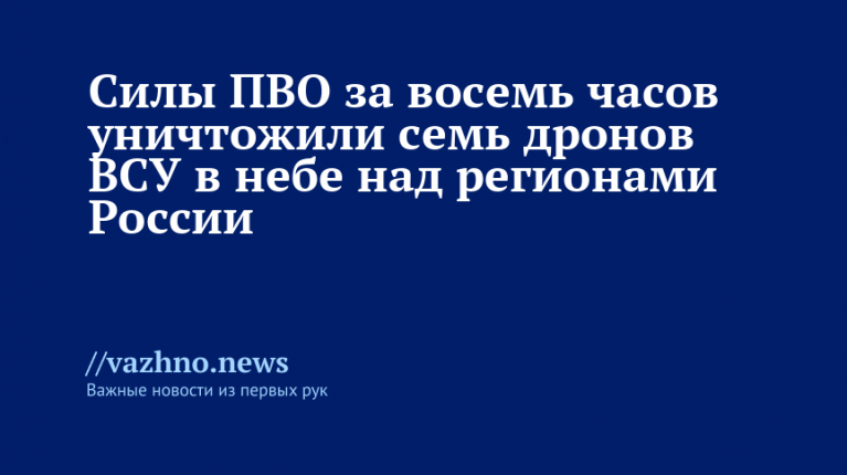 ПВО за 8 часов сбили 7 дронов ВСУ над регионами России