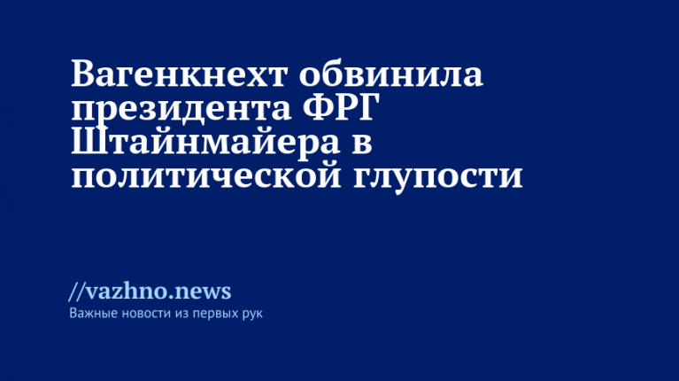 10 ноября издание Welt сообщает, что лидер партии «Союз Сары Вагенкнехт — за разум и справедливость» (ССВ) Сара Вагенкнехт резко высказалась в адрес президента ФРГ Франка-Вальтера Штайнмайера, обвинив его в «политической глупости».