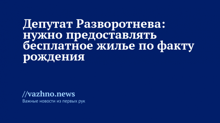 По факту рождения людям следует выдавать бесплатное жилье. С таким заявлением 10 ноября в беседе с «Известиями» выступила заместитель председателя комитета Государственной думы по строительству и жилищно-коммунальному хозяйству Светлана Разворотнева.