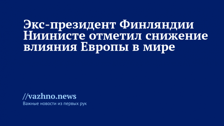 Бывший президент Финляндии Саули Ниинисте заявил, что конфликт на Украине привел к уменьшению влияния Европы на международной арене. В интервью Yle 10 ноября он подчеркнул, что теперь основные решения принимают не Европа, а США, Китай и Россия.