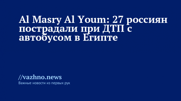 ДТП случилось ранним утром во вторник на трассе Рас-Гареб в Хургаде — там столкнулись туристический автобус и тяжелый грузовик. В числе пострадавших находятся 27 россиян, двое представителей Литвы, семь туристов из Финляндии и трое египтян, в том числе водитель и экскурсовод.