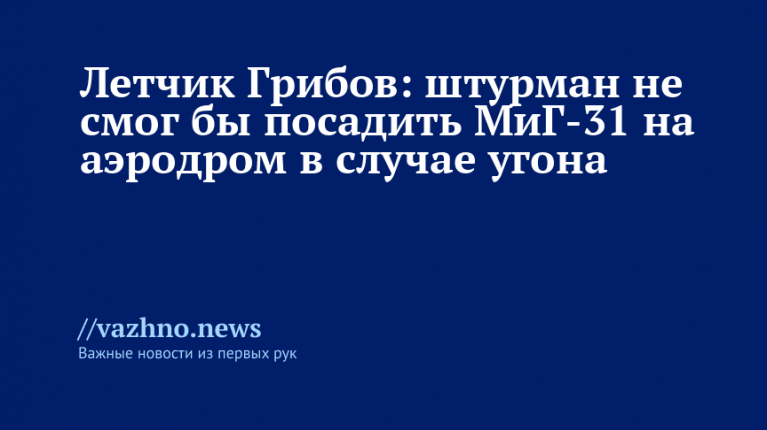 Грибов: штурман не смог бы посадить МиГ-31 при угоне