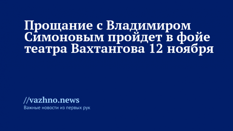 «Прощание с народным артистом России Владимиром Симоновым будет проходить в большом фойе Театра имени Евгения Вахтангова 12 ноября с 11:00 до 13:00», — указано в сообщении.