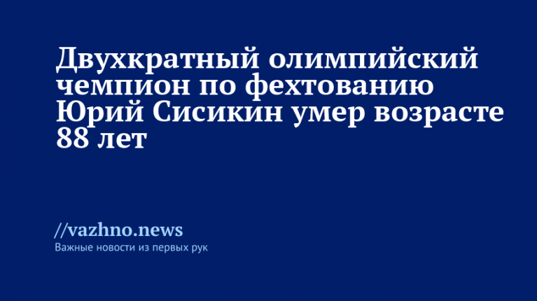 «Сегодня ушел из жизни заслуженный мастер спорта СССР по фехтованию на рапирах, олимпийский чемпион 1960 и 1964 годов в командных соревнованиях, двукратный серебряный призер Олимпийских игр, Юрий Федорович Сисикин», — говорится в Telegram-канале ведомства.