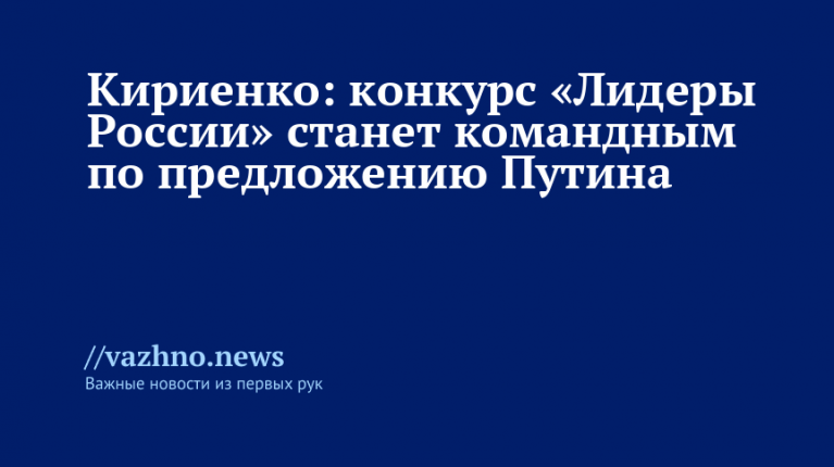 Кириенко: конкурс «Лидеры России» станет командным по указанию Путина