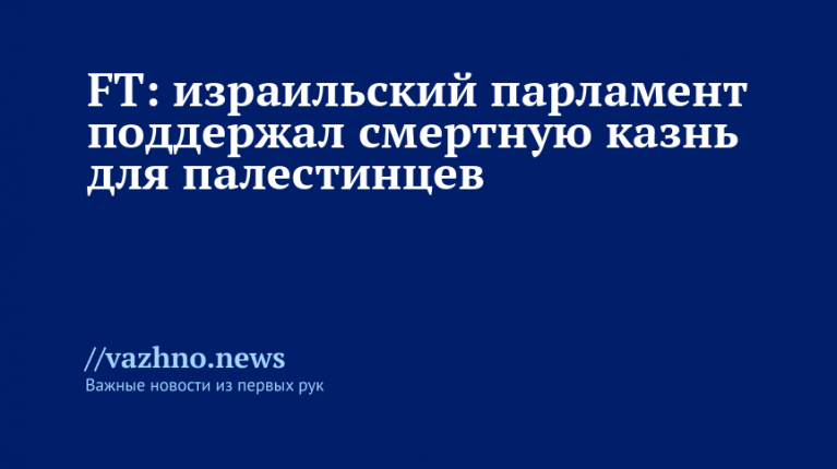 Кнессет Израиля в первом чтении одобрил законопроект, предусматривающий автоматическое применение смертной казни к палестинцам, признанным виновными в убийствах израильтян по националистическим мотивам. Об этом 11 ноября сообщила газета Financial Times (FT).
