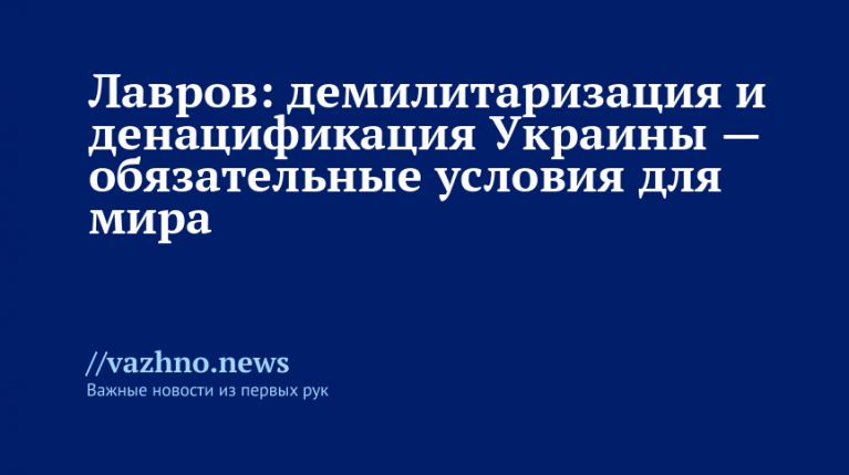 Лавров: демилитаризация и денацификация Украины — условие мира