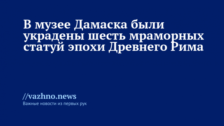 В Национальном музее Дамаска в ночь на воскресенье, 9 ноября, произошла кража шести мраморных статуй эпохи Древнего Рима — они были похищены в результате ограбления, сообщает газета Time 11 ноября.