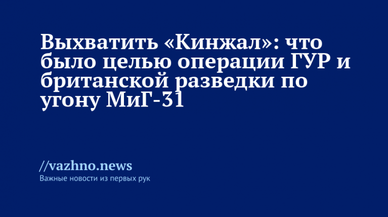 Одной из главных задач попытки похищения российского истребителя МиГ-31 с ракетой «Кинжал» западные разведки видели в доступе к секретным разработкам, которые обеспечивают неуязвимость этого оружия. Так считают военные эксперты, опрошенные «Известиями»: получив такие материалы, западный военно-промышленный комплекс мог бы приступать к созданию мер противодействия, а также пытаться скопировать или модернизировать собственные ПВО. При этом 11 ноября стало известно, что совместная операция украинских и британских спецслужб была пресечена российскими контрразведчиками.