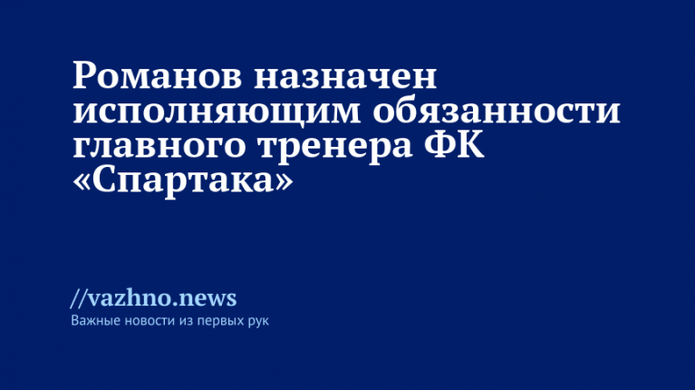 «Официально: Вадим Романов — и. о. главного тренера «Спартака», — сказано в публикации.