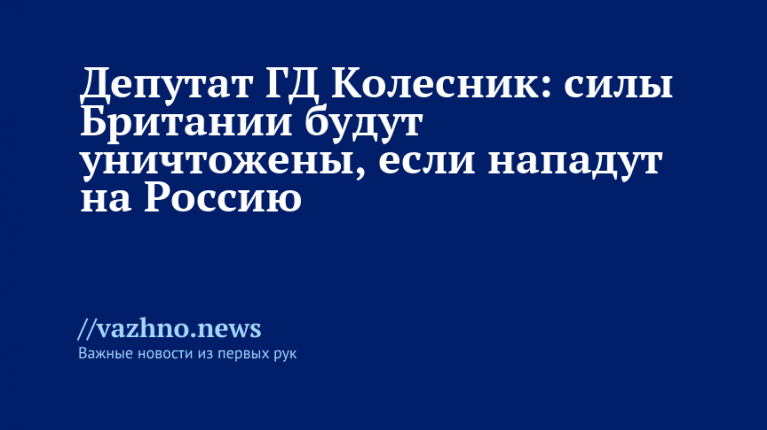 Депутат ГД Колесник: британские силы будут уничтожены, если нападут
