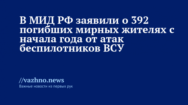 По информации, прозвучавшей в «Известиях» от посла МИД РФ по преступлениям киевского режима Родионa Мирошника, с начала 2025 года в результате ударов украинских беспилотников погибли 392 человека.