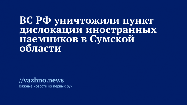 Вооруженные силы (ВС) РФ ликвидировали пункт дислокации иностранных наемников, которые сражались на стороне Вооруженных сил Украины в Сумской области. Об этом 12 ноября сообщило ТАСС со ссылкой на российские силовые структуры.