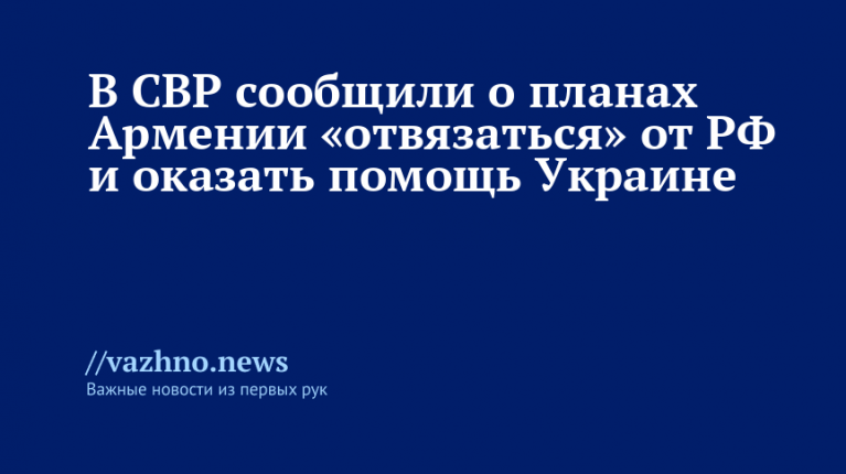 СВР: Армения планирует «отвязаться» от РФ и помочь Украине