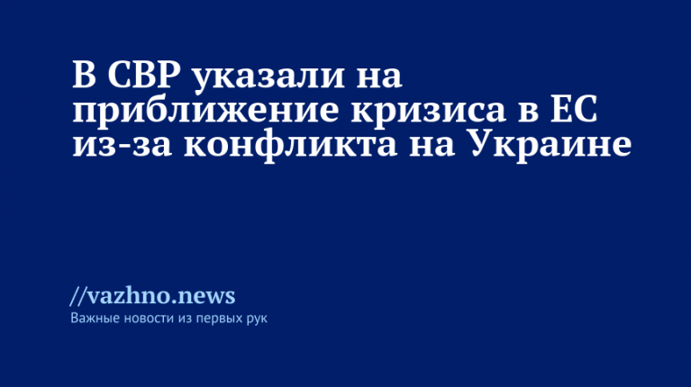 Страны Евросоюза (ЕС) оказались на пороге социально-экономического кризиса из‑за конфликта на Украине и стремления нанести поражение России. Такую информацию 12 ноября распространило пресс‑бюро Службы внешней разведки (СВР) РФ.