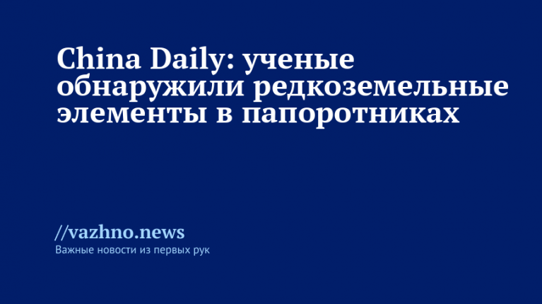 Китайская команда ученых впервые выявила минерализацию редкоземельных элементов (РЗЭ) в папоротниках. Это открытие может послужить базой для экологически безопасного метода извлечения этих стратегически важных материалов. Об этом сообщила газета China Daily.