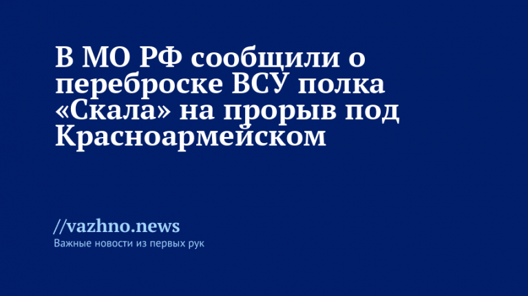 МО РФ: ВСУ перебросили полк «Скала» для прорыва под Красноармейском