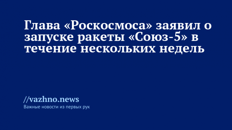 Ракета-носитель «Союз-5» может быть запущена в ближайшее время, сообщил 12 ноября изданию «Известия» глава госкорпорации «Роскосмос» Дмитрий Баканов.